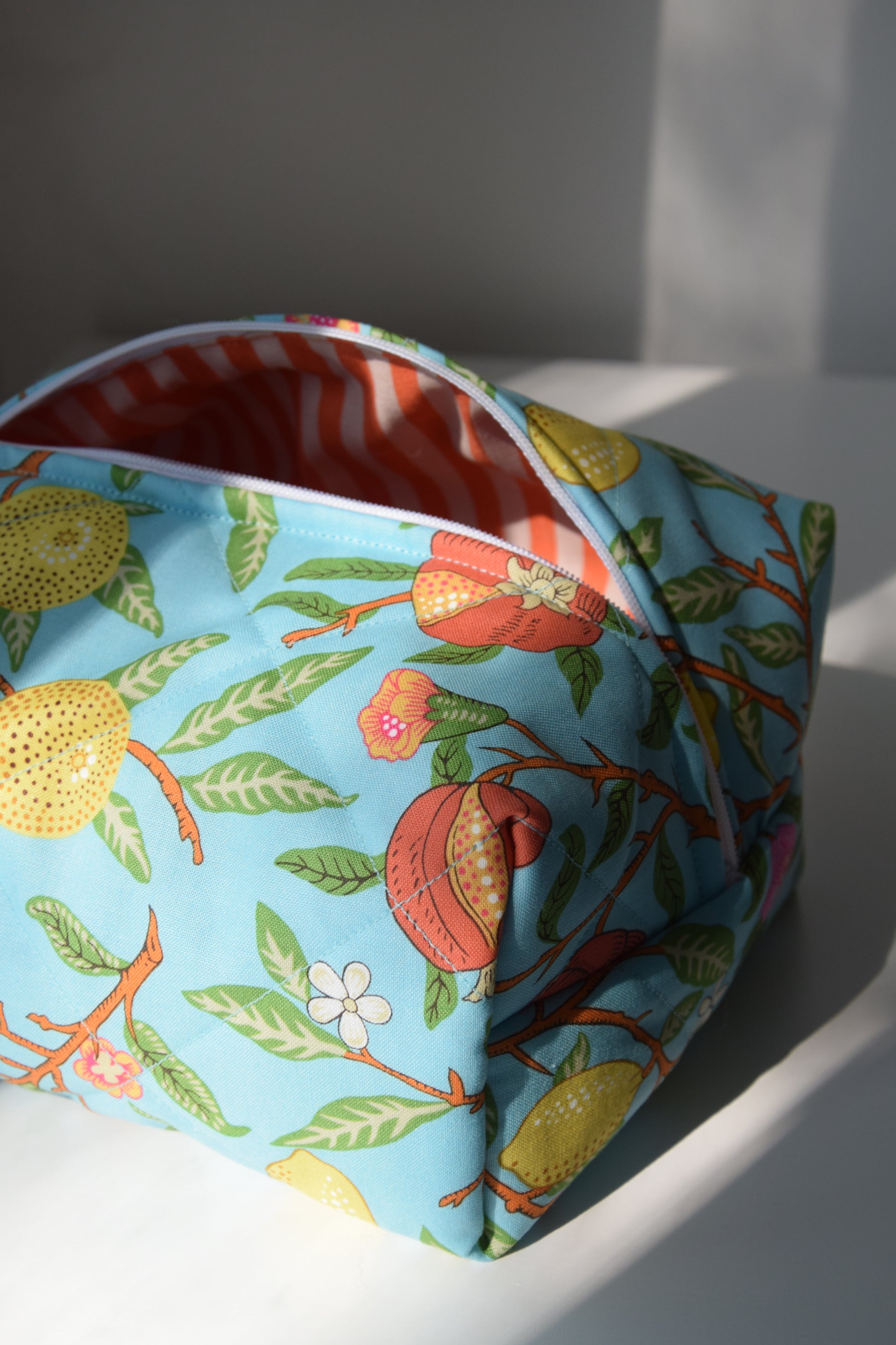 Carefully quilted for structure and durability, this pouch is perfect for storing makeup, toiletries, or travel essentials. Whether you're at home or on the go, this charming bag adds a fresh, tropical touch to your day.