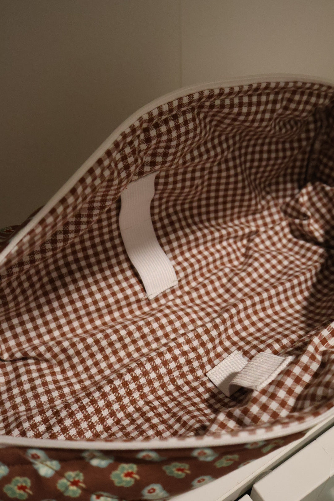 Made with the same rich brown floral fabric as the Georgia Tote and finished with a classic brown gingham lining, it’s the perfect companion set. With a sturdy zipper closure, the Georgia Hair Tools Bag ensures your tools stay safe and neatly stored, whether you’re traveling or organizing your beauty station.