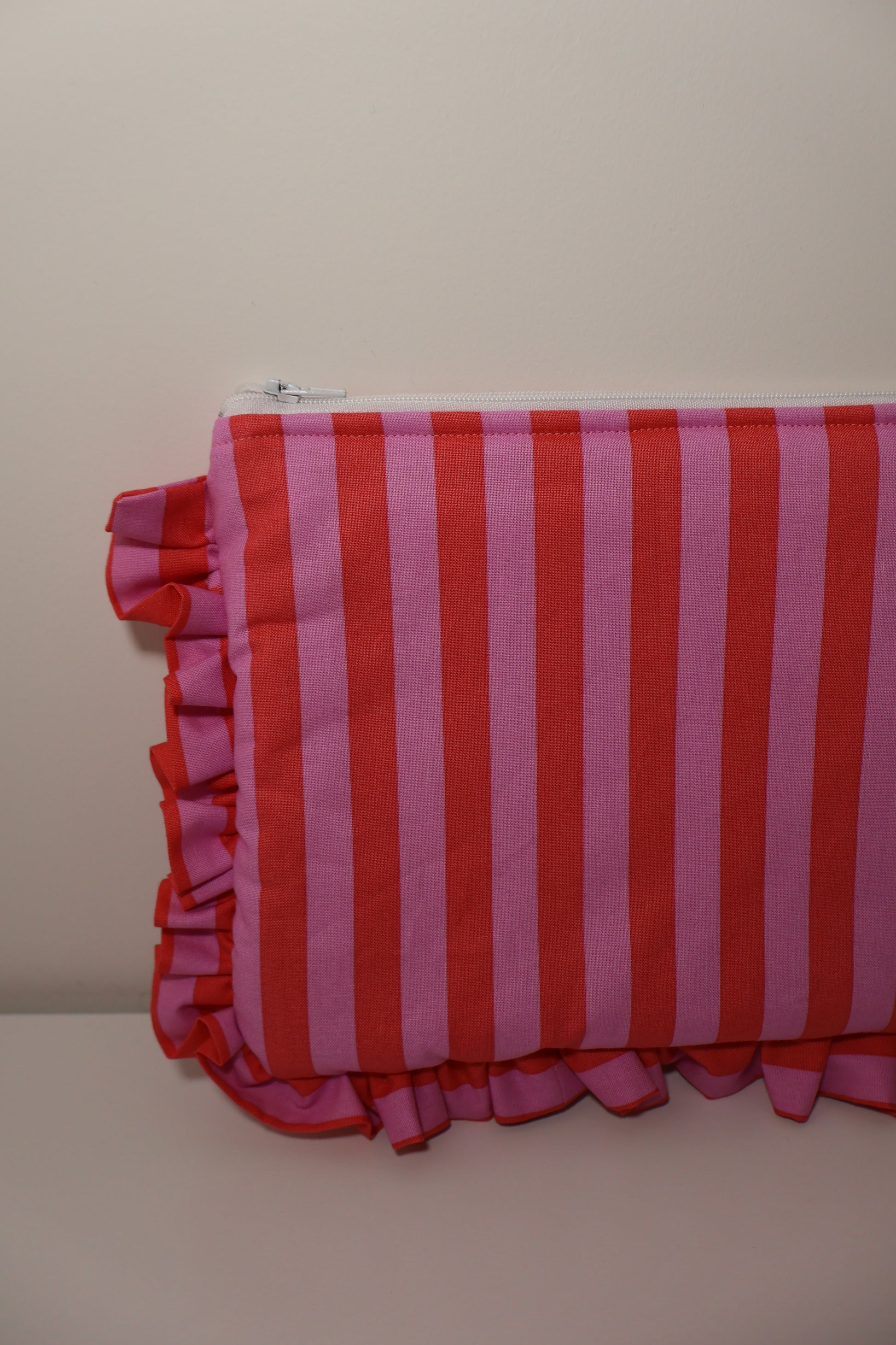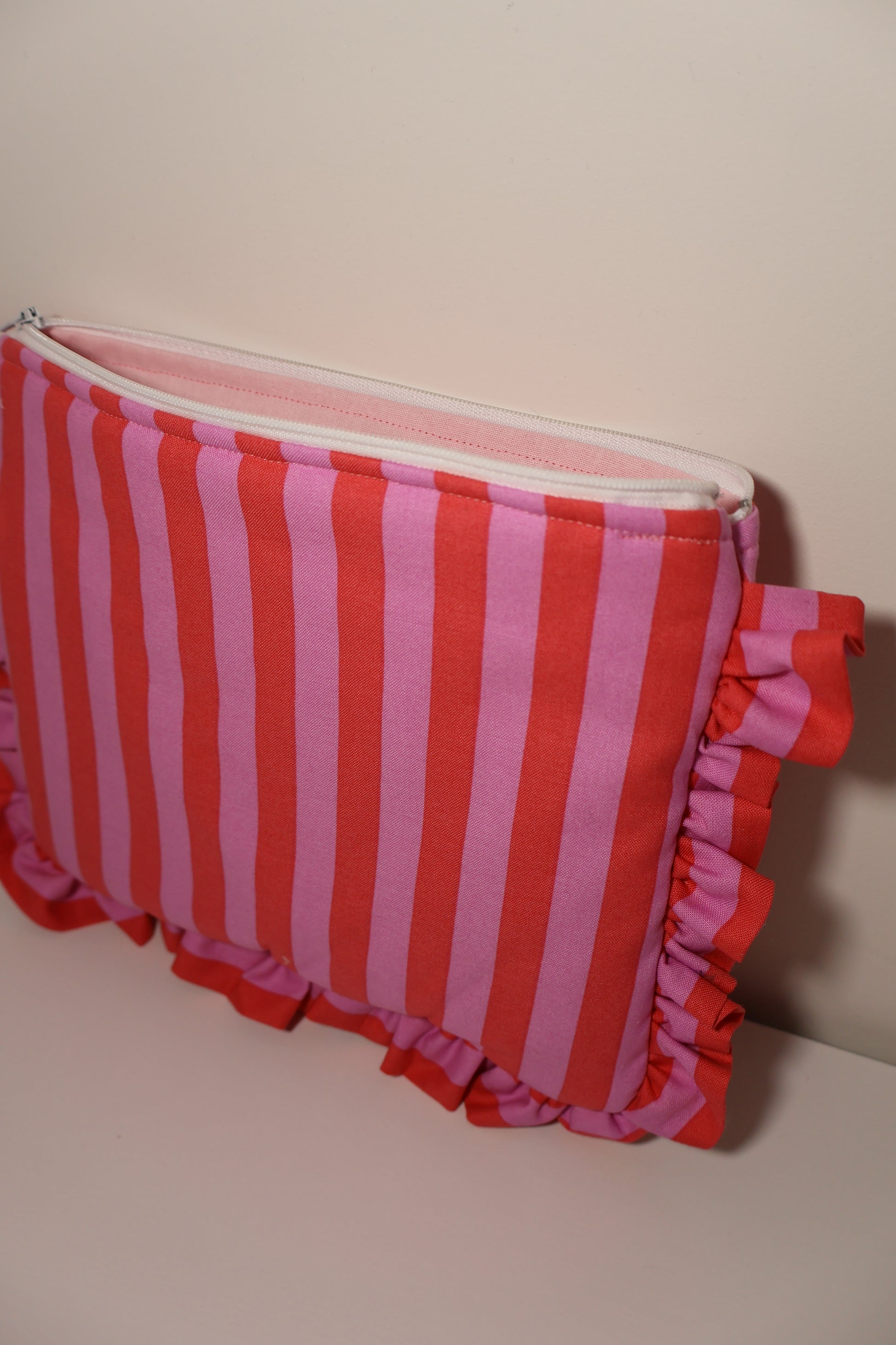 The Rosie Clutch is a charming finishing touch from our Valentine’s Day Edit — designed for moments when you want just the essentials, wrapped in something special. Made from bold pink and red stripes and finished with a soft ruffled edge, this clutch feels playful, romantic, and timeless all at once.